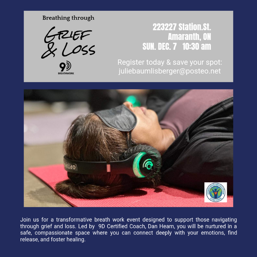 Our first 9D Breathwork Event was so well received, that I have decided to have it as a monthly offering. Spots are limited, but you can register by e-transfering your payment of $80 to juliebaumlisberger@posteo.net . Cash payments may be made at the door, but you will still need to RSVP.